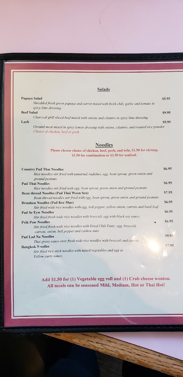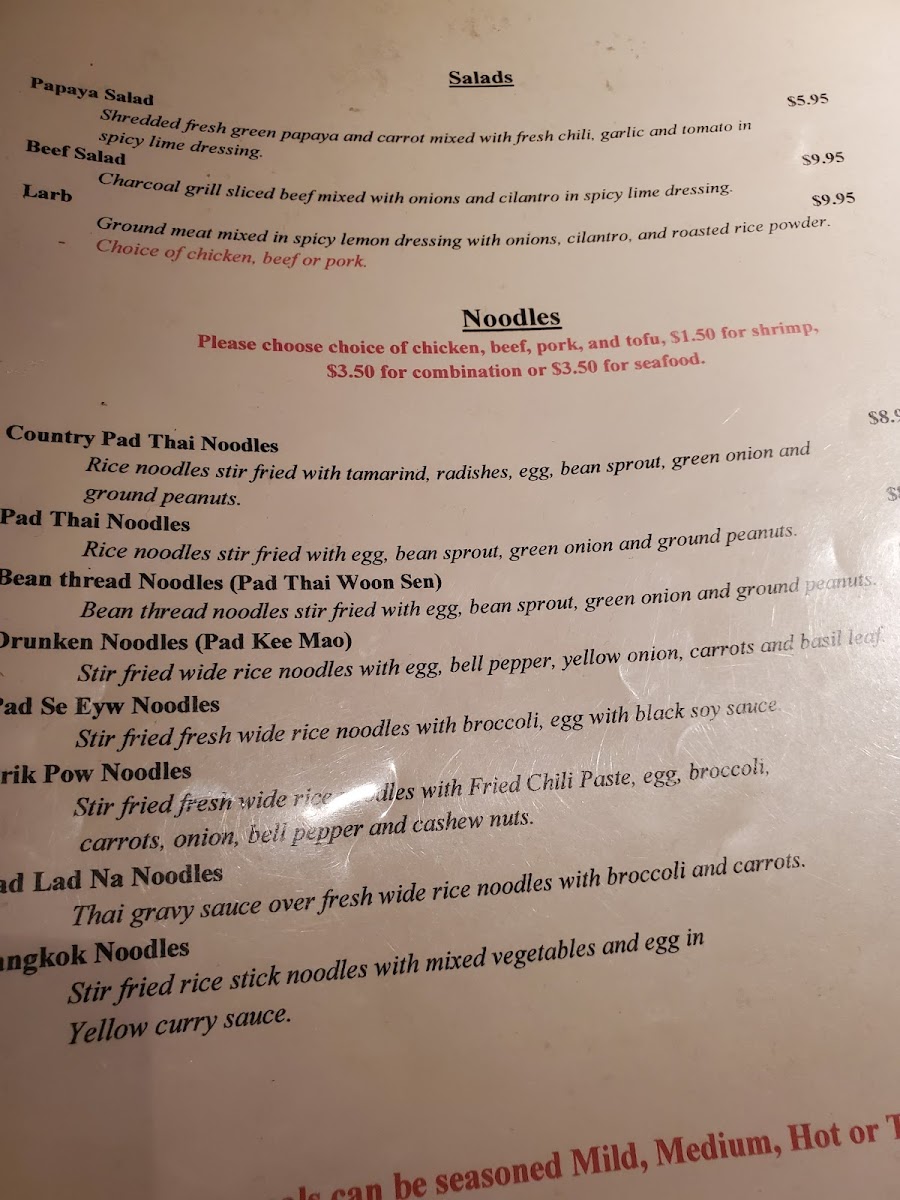 J's Noodles Star Thai Menu